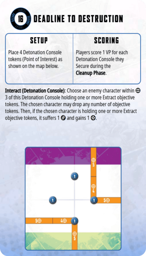 A smaller diamond shape than D-Maps, with an Interact that can damage Extract holders makes this a very attrition focused Scenario. It’s like the Anti-Extremis.