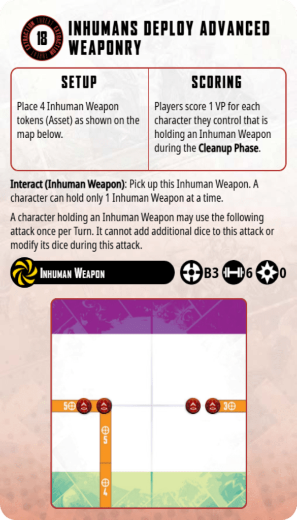 I want to start by pointing out Inhuman Advanced Weaponry does NOT allow Inhumans to reroll attacks. Doesn’t sound very advanced to me…