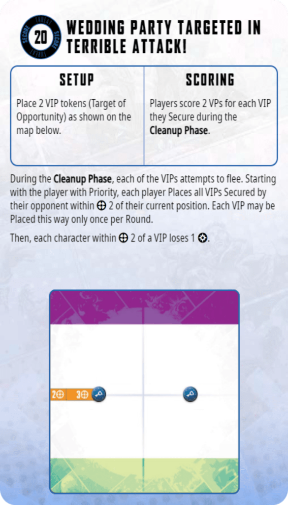 I have been trying this in Hydra and have mixed feelings about it. First of all it enables World Domination turn 1 with priority, which is great fun, as it’s a bonus VP and a lot of power. However the points are very spread out, and it is a lot less likely to turn into a centralised brawl than it’s comparable scenario: Fisk.